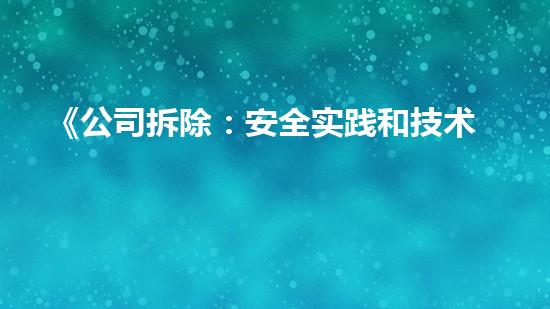 摘要《公司拆除:安全实践和技术探索》是一本涵盖巴洛仕集团化工厂拆除的全过程,介绍拆除安全实践和新技术的专业书籍。拆除过程中需要掌握一定的基础化学知识和现代技术,以确保拆除过程的安全和环保性,同时还需要...