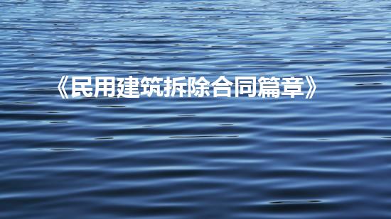 摘要:《民用建筑拆除合同篇章》是一份涉及到拆除行业的重要指导文件,它提供了针对民用建筑拆除项目合同签订所需注意的方方面面,包换合同范本、合同附加条款等,为拆除行业人员提供了宝贵的借鉴和指导。本文将从拆...