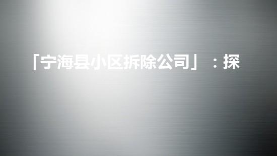 「宁海县小区拆除公司」:探讨城市更新的利与弊