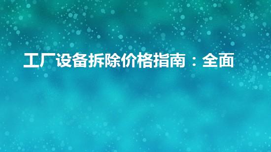 摘要:在设备拆除行业中,全面预算及成本分析是非常重要的,对于设备拆除的预算和成本控制具有至关重要的意义。本文旨在介绍工厂设备拆除价格指南:全面预算及成本分析,提供相关背景信息,引发读者的兴趣。正文:1...