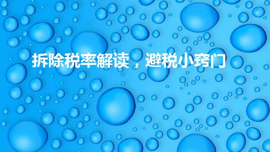 摘要:本文主要介绍拆除税率解读,以及避税小窍门,并给读者提供相关背景信息。文章从多个方面深入分析拆除税率解读和避税小窍门,包括税率政策、技术方案、资金管理、风险控制、法律合规等。全文沉淀几乎所有的行业...