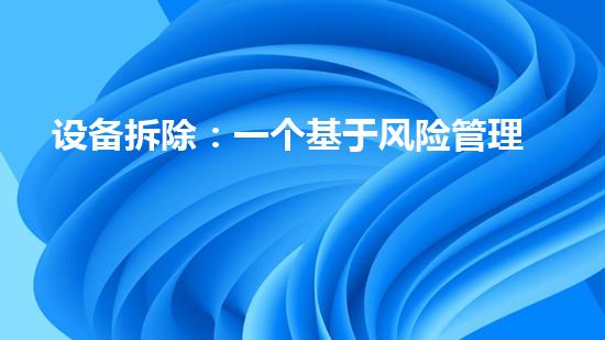 摘要设备拆除一直是一个风险高、技术难度大的行业。本文介绍了基于风险管理的完美方案,突出了风险管理的重要性。通过对巴洛仕集团化工拆除一站式解决方案的案例分析,介绍了水刀不动火拆除技术的应用、油罐拆除、化...