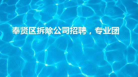 奉贤区拆除公司招聘,专业团队等你加入!