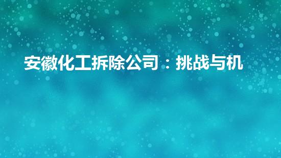 摘要:安徽化工拆除公司近年来在化工领域逐渐崭露头角,专注于化工厂拆除、设备回收、危废处理等方面。本文将从拆除行业专家的角度出发,深入探讨安徽化工拆除公司面临的挑战与机遇,并提出相应建议。正文:一、拆除...