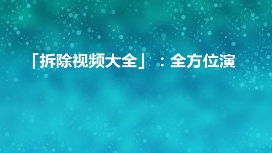 「拆除视频大全」:全方位演示建筑拆除技能,用直观的素材展现专业化工技术!