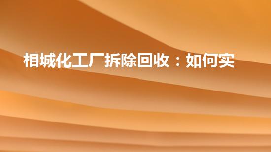 相城化工厂拆除回收:如何实现安全环保高效?