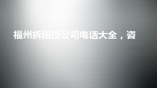 摘要:本文介绍了福州拆围挡公司电话大全,该公司为客户提供一站式服务,包括拆除、清运、消毒等多种服务。本文将从专业化、高效性、环保性、安全性、成本效益等多个角度进行探讨,为读者深入解析这家公司的优势。正...