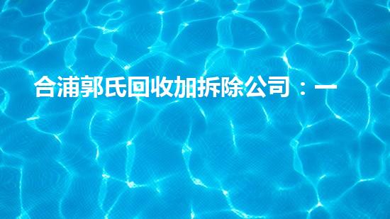 合浦郭氏回收加拆除公司:一家致力于绿色发展的化工技术专家