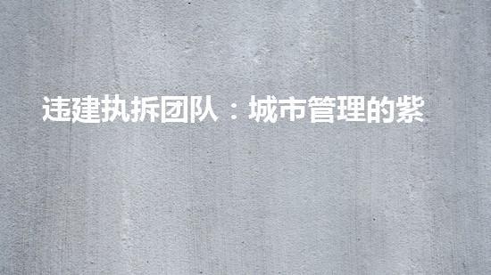 摘要本文将介绍违建执拆团队——城市管理的紫金山剑,引入读者的兴趣,并提供背景信息。正文一、紫金山剑的介绍作为中国城市管理领域中的一支重要力量,紫金山剑违建执拆团队具有强大的实力和经验,旨在打击违法建设...