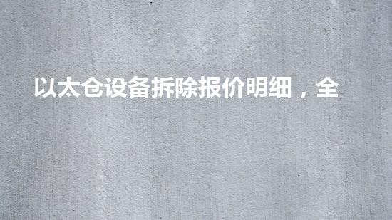 摘要:本文介绍了以太仓设备拆除报价明细,全面解析拆除流程和费用。以太仓设备拆除是一个比较复杂的工作,需要一个专业的团队来完成。本文将从拆除前的准备工作、设备拆除的步骤、费用构成和设备拆除后的处理等方面...