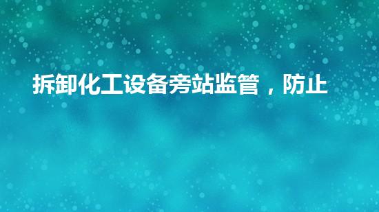 摘要:化工设备拆卸过程中,旁站监管可以避免意外伤害。本文从化工设备拆卸和旁站监管两个方面进行深入研究,探讨如何通过相关措施实现化工设备拆卸旁站监管,防范可能发生的意外伤害。正文:一、拆卸前的安全评估与...