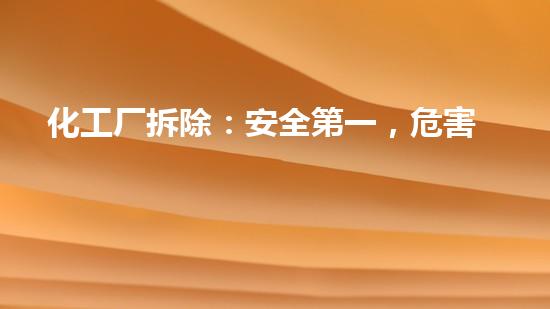 化工厂拆除:安全第一,危害不可忽视摘要:化工厂的拆除过程中,必须把安全放在第一位,并且必须重视潜在的危害,采取相应的措施进行防范。本文将针对化工厂拆除的安全问题展开探讨,并着重介绍巴洛仕集团的化工拆除...