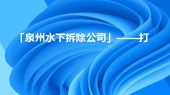 「泉州水下拆除公司」——打造水下一流拆除企业