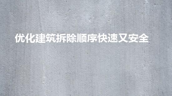 优化建筑拆除顺序快速又安全:化工技术专家教你如何操作
