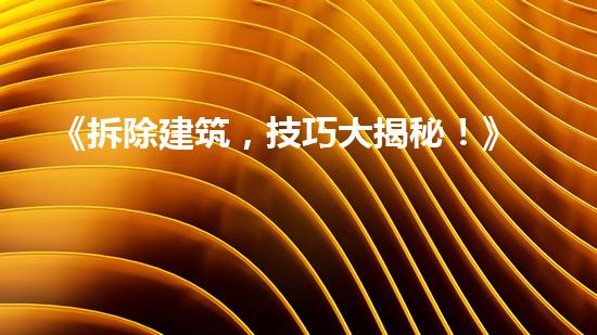 摘要:本文将介绍拯救古建筑,赋予新生:关于被拆除古建筑的故事。探讨拆除行业专家在拯救古建筑方面的作用,并介绍专业深入的阐述。正文:一、古建筑的文化价值古建筑是文化遗产的重要组成部分,代表了人类价值观念...