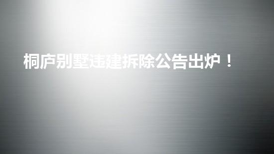 摘要:桐庐别墅违建拆除公告出炉!这是一件备受关注的事件,引起了社会各界的广泛关注。针对这个事件,本文邀请了一位拆除行业的专家,从多个角度深入分析桐庐别墅违建拆除公告的相关问题。通过本文的分析,读者可以...