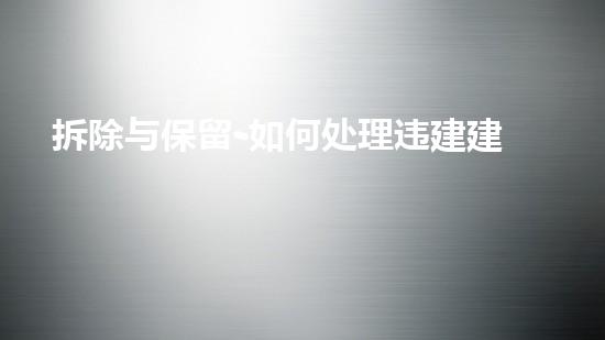 摘要:违建建筑的拆除与保留,是一个热门话题。本文从化工技术专家的角度,详细探讨了如何处理违建建筑。主要梳理了以下四个方面的问题:施工措施、治理方案、危废资源化、保留利用,针对这些问题提出了相应的建议。...