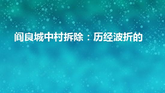 阎良城中村拆除:历经波折的城中村改造始末