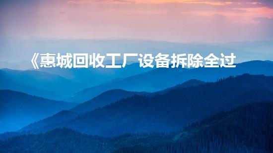 本文主要介绍了一篇名为《惠城回收工厂设备拆除全过程详解》的文章,通过阐述这篇文章中的内容和主旨,引出读者的兴趣,并提供了相关背景信息。