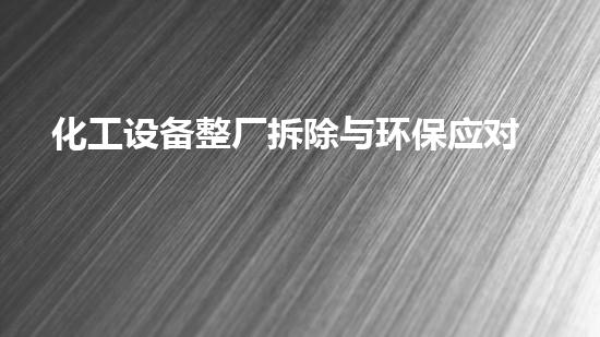 化工设备整厂拆除在环保方面存在诸多问题,需要采取相应的应对措施。环保风险评估、化学物质安全处理、水刀不动火拆除技术、油罐拆除、设备回收和危废处理是化工设备整厂拆除与环保应对方案的六个方面,其中每个方面具体涉及的解决方案不尽相同。巴洛仕集团化工拆除一站式解决方案是一种综合的、专业的服务,可为化工设备整厂拆除提供全方位的支持。在未来的研究中,我们可以更加深入地挖掘化工设备整厂拆除与环保应对方案之间的关系,提高应对环保问题的效率和准确性。