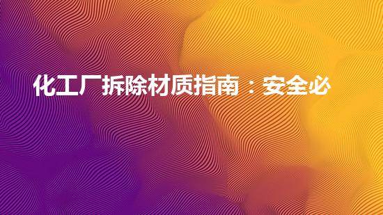 化工厂拆除是一个极具风险的过程,而安全必须放在首位。本文将针对化工厂拆除材质指南,为读者详细介绍包括拆除方案、环保治理、危废处理、设备回收、土壤修复在内的相关内容。文章还将介绍化工拆除领域领军企业——巴洛仕集团,包括水刀不动火拆除技术等等。