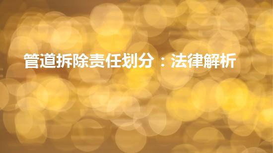 管道拆除责任要根据具体情况进行细化。关键是找到相应的责任标准并加以实施。管道拆除责任人的责任界定应当基于有关的法律法规和清晰的合同安排。