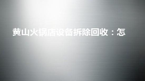 黄山火锅店,是一家老字号餐厅,自开业以来就备受好评。如今,为了迎合市场需求,火锅店的主人决定对其进行装修和设备更换,旧的设备将要被拆除并出售。然而,对于这些旧设备的回收处理,主人并不清楚,因此请来拆除行业专家进行介绍和指导。这篇文章将对黄山火锅店设备拆除回收进行详细介绍,希望能够为读者提供帮助和指导。