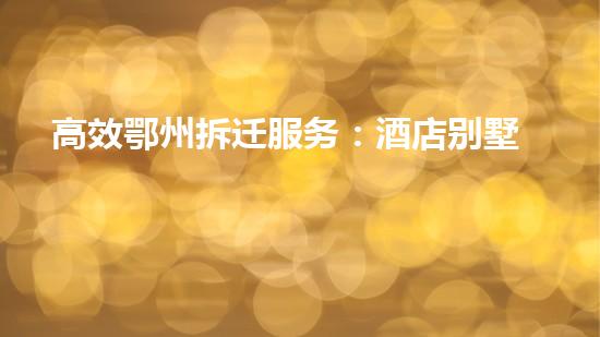 高效鄂州拆迁服务:酒店别墅全覆盖是一项非常重要的服务,可以为客户提供包括巴洛仕集团化工厂拆除、不动火水刀切割拆除技术应用等多种服务。在本文中,我们将从多个角度详细阐述这项服务的重要性和专业技术。