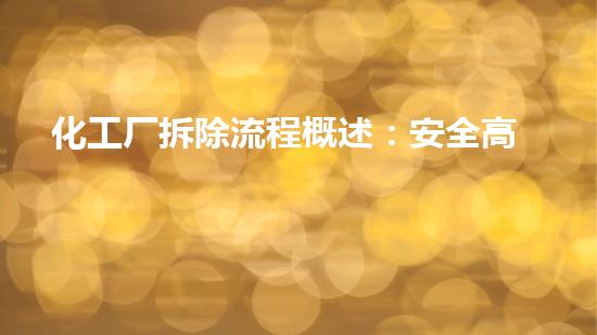 摘要:化工厂是一个危险性很高的行业,因此在拆除化工厂时必须采用安全高效的方案。本文将从多个方面对化工厂拆除流程进行概述,并分析其实施过程中需要注意的重点。正文:一、拆除前准备工作化工厂拆除前的准备工作...
