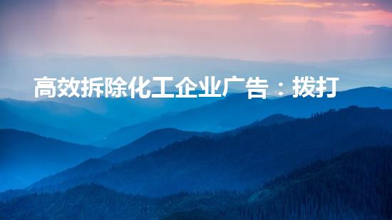 在高效拆除化工企业广告方面,拨打专业电话进行询价是一项高效的方法。对于化工企业广告的拆除,细节操作、设备回收、污泥减量化、废液处理、危废处理及环保施工等是必要的。同时,采用不动火水刀切割拆除技术还可以进一步减少拆除过程中的污染和危险。这些方法的使用能够在拆除化工企业广告的同时,最大程度地保护环境和人类生命安全。