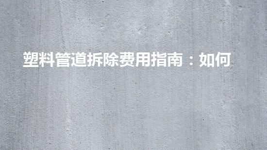 塑料管道拆除费用指南:如何以最低价格完成拆除?