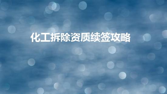 摘要:化工拆除资质续签攻略是一个热门话题,对于化工企业和相关从业人员来说,这是一个必须深入掌握的知识。本文将介绍化工拆除资质续签的攻略,包括资质申请的要求、审批流程、注意事项等,旨在帮助读者更好地理解...