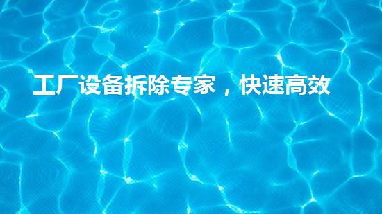 摘要:工厂设备拆除专家是以工厂设备拆除、搬迁和回收为中心的行业专家。他们通过运用先进的技术手段和专业设备,可以快速高效地完成设备搬迁和回收的任务。本文将从几个方面详细介绍工厂设备拆除专家的工作内容及相...