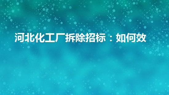 河北化工厂拆除招标:如何效率高推进环保工程?