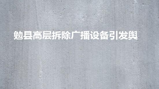 近日,勉县高层决定拆除广播设备,引发舆论关注。该事件引发了社会各界的担忧和质疑,认为这可能会对勉县的公共服务和安全造成不良影响。那么,勉县高层为什么要拆除广播设备呢?这是否合理呢?接下来我们将从多个方面进行分析。