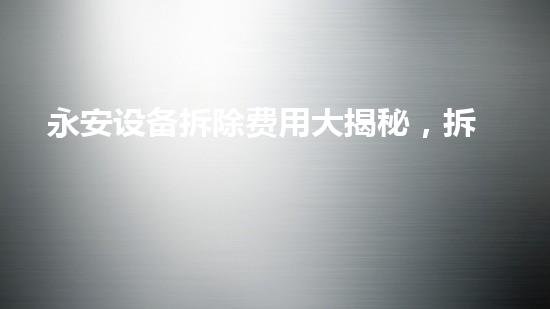 永安设备拆除费用大揭秘,是一篇介绍化工设备拆除费用的专业文章,为化工行业人士提供实用的建议和经验。本文将从以下4-6个方面,对永安设备拆除费用进行揭秘:拆除前的准备工作、拆除过程中的费用控制、拆除后对现场的清理和回收等方面进行深入分析。