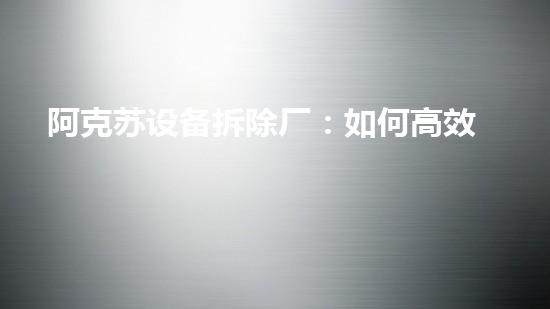 阿克苏设备拆除厂是一家专注于设备拆除的企业,为了提高效率,该企业采用了一系列高效的基础切割技术。本文将从多个角度对阿克苏设备拆除厂的基础切割技术进行深入分析。