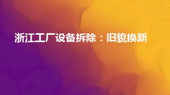 随着时代的发展,各行各业都在不断更新换代,以适应社会发展的需要,浙江工厂设备拆除也是一个典型的例子。本文将介绍浙江工厂设备拆除的过程,旨在引起读者的兴趣,并给读者提供背景信息。