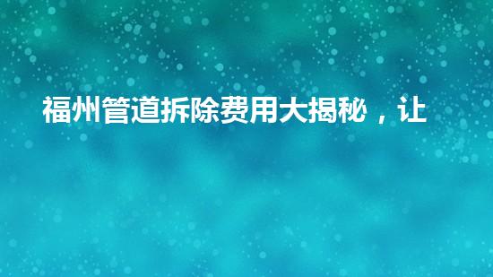 摘要:福州管道拆除费用是一个复杂的问题,有时候可能会让人掏冤枉钱。在本文中,我们将从多个方面分析福州管道拆除费用,并让您了解如何少掏冤枉钱。