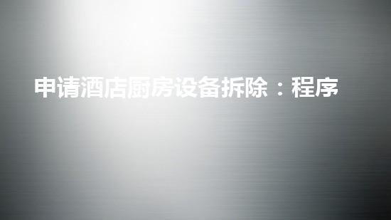 在进行酒店厨房设备拆除前,需要向相关部门进行申请。根据不同地区的规定,可能需要向消防、环保、建设委员会等机构提出申请。申请时需要提供详细的拆除计划、拆除范围、清理工作计划等相关资料。