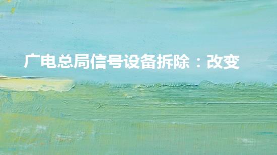 广电总局信号设备的拆除是电视发展的新篇章,这篇文章将会分别从以下四个方面进行深入分析介绍:1、广电总局信号设备拆除的背景和意义;2、数字电视的兴起和优势;3、广电总局信号设备拆除的影响和挑战;4、未来数字电视发展的可能性和前景。