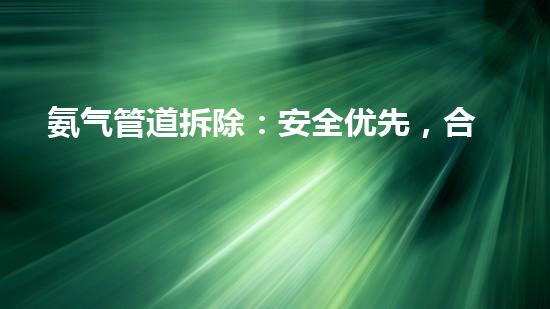 在氨气管道拆除过程中,安全是第一位的。必须采取必要的措施来保护工人和公众的安全。这些措施包括但不限于:在拆除现场设置围栏和标志,防止未经授权的人员进入现场;在拆除现场配备足够数量的消防器材和急救设施,以便及时处理突发事件;并且在拆除前,需要将现场周边的风险和危险因素排查清楚,并制定详细的应急计划。