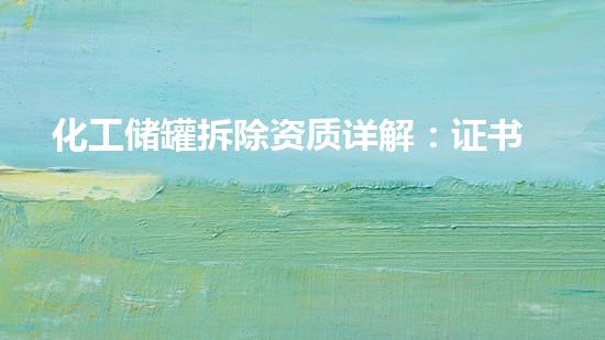 想要进行化工储罐拆除必须拥有相关的证书,其中最关键的是化工储罐拆除资质证书。该证书由国务院安全生产监督管理部门颁发,用于证明某个企业拥有化工储罐拆除能力和相关的技术水平。拥有该证书的企业在进行化工储罐拆除时,需要在拆除前向当地的安全生产监督管理部门提交复核前的拆除方案及资质证书。