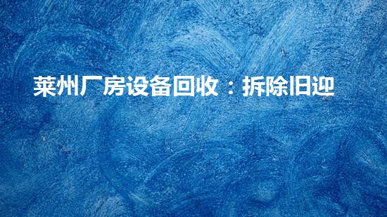 莱州厂房设备回收是一项重要的工程,主要目的是为了拆除旧设备迎来新的设备。本文将介绍该工程的背景及其重要性,进一步讲述其实施的过程和具体的技术方法,并结合实际案例分析其应用价值。