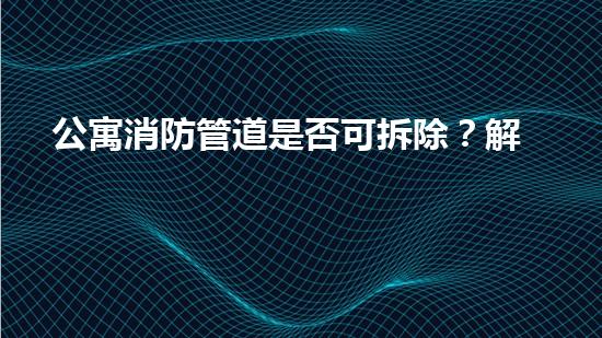 公寓消防管道是保障住户生命财产安全的重要设施,而是否可拆除需要根据实际情况进行评估。本文从消防管道的重要性和拆除风险两个角度分析,旨在给读者提供必要的背景信息和专业知识支持。