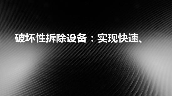 本文介绍了破坏性拆除设备:实现快速、高效、安全的拆卸方式。随着人们对拆迁、拆除的要求不断提高,对于拆除设备的要求也越来越高。破坏性拆除设备正是在这一需求下应运而生。本文将从不同角度对破坏性拆除设备进行深入探讨和分析。