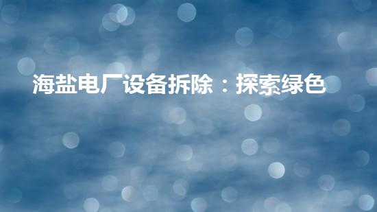 摘要:海盐电厂设备拆除,是一项涉及环境、安全、经济等多个领域的高难度任务。因此,探索绿色可持续拆卸方案显得尤为重要。本文将从多个方面分析该问题,并介绍巴洛仕集团化工拆除一站式解决方案及其水刀不动火拆除技术的应用。