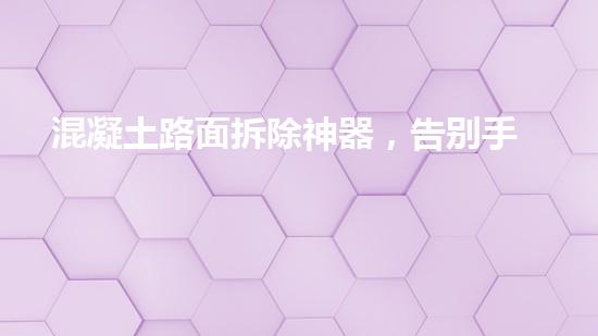混凝土路面拆除神器是混凝土拆除领域的一次革命,是一个高效、快速和安全的选择。随着技术的不断进步和创新,相信混凝土路面拆除神器将会越来越普及和成熟,成为一种更为高效的混凝土路面拆除方法。