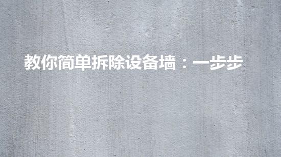 设备墙是现代工业化生产中常见的一种结构,拆除设备墙通常涉及到多个问题,如设备墙的结构、拆卸工具、安全防护等等。本文通过“巴洛仕集团”化工拆除一站式解决方案为例,详细介绍了如何简单拆除设备墙的方法和步骤,为读者提供了有用的背景信息和操作指南。本文将从以下几个方面对教你简单拆除设备墙进行深入介绍。