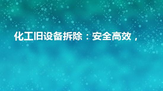 化工旧设备拆除是一个关键的环节,这涉及到成本、建设施工和环保等因素。本文将介绍化工旧设备拆除的安全高效,环保经济的方法,重点分析一种不动火拆除技术,并介绍一个化工拆除一站式解决方案。通过本文的阅读,读者可以得到实用的建议和知识,以促进更安全、高效、环保的化工拆除方案的落实。